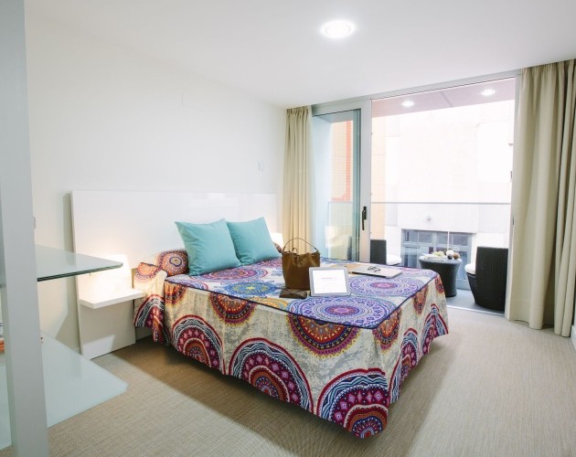 32 m² studios with double bed, kitchen, private bathroom and balcony. Comfort and functionality.